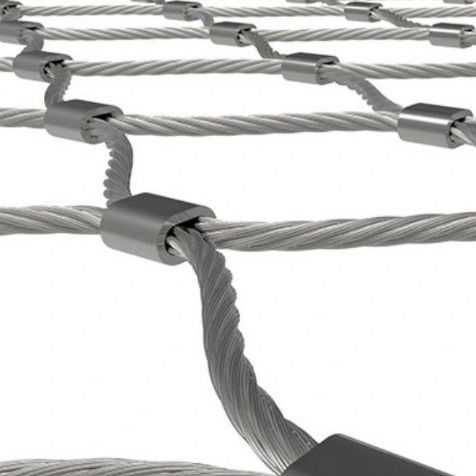 Stainless steel wire rope wove mesh is a kind of plain weave, each warp wire rope crosses alternately above and below each weft wire rope. Warp and weft wire ropes generally have the same diameter.The mesh has strong tensile strength and high flexibility,high transparence and wide span. The flexible s.s. cable mesh has unreplacable advantages compared with other mesh products in many aspects like practicability,security,aesthetic property and durability etc. Generally, there are two types of buckle: one is closed-type buckle and the other is open-type buckle. Features of closed type: the mesh has multiple steel wire ropes combined together, and the closed buckle is relatively stronger, but there are multiple joints at one end of the closure. Open-type features: the whole mesh can be made with a steel wire rope, which is convenient for installation and has a beautiful overall effect.